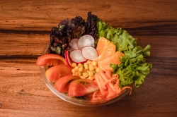 Mix de verdes, zanahoria, choclo, tomate, rabanitos, gajos a vivo de naranja