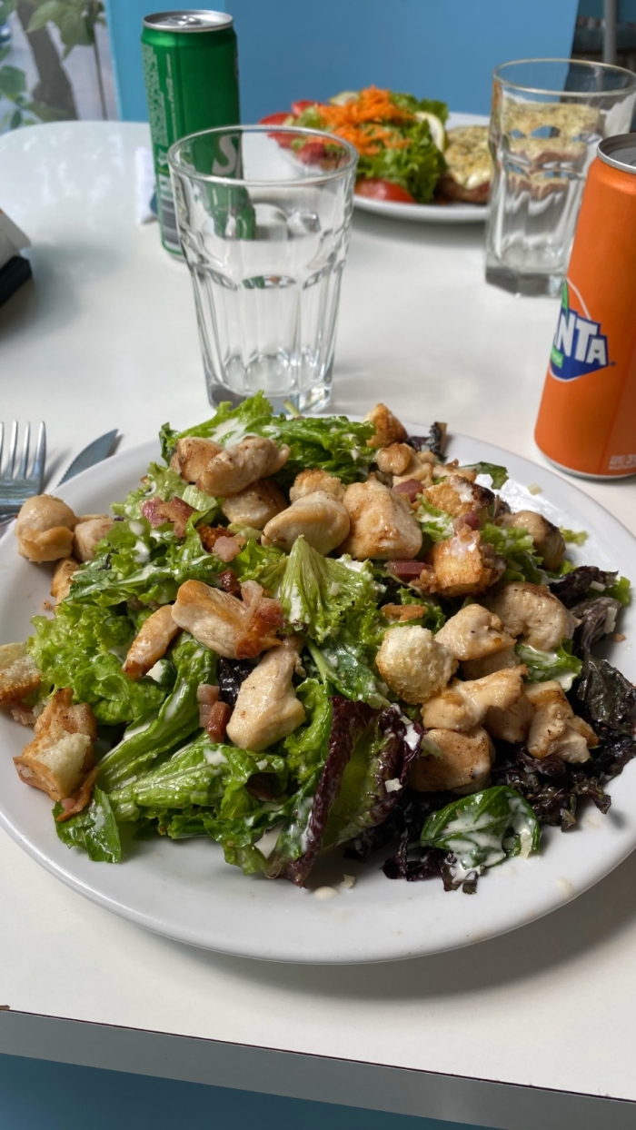 mix de verdes, pollo, crustones, panceta, limoneta y aderezo cesar